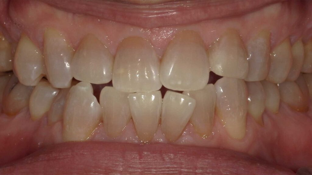 - 左右2番目の歯が口蓋側転位していて並びが不揃いです